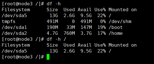 df命令能统计文件或目录大小,而前面讲的df命令也能查看分区大小,这里我们以 /home分区为例: