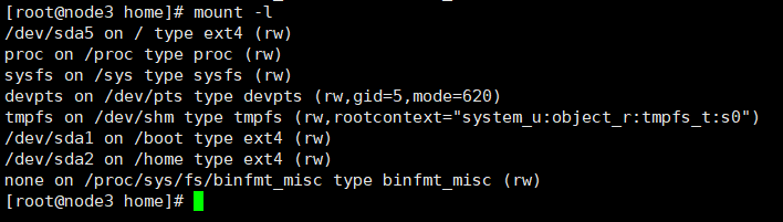 ②、依据配置文件 /etc/fstab 的内容自动挂载:mount -a