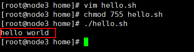 第一步:在/home目录下创建脚本hello.sh,简单的输出 hello world
