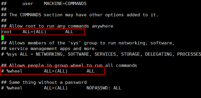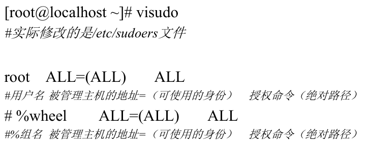 我们可以使用 vim /etc/sudoers 命令,或者 visudo 命令