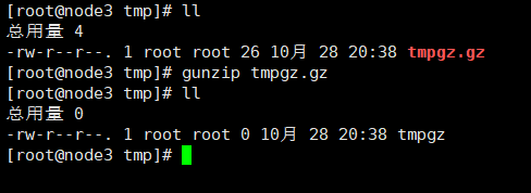 范例:我们在tmp目录下创建一个文件tmpgz,然后通过gzip tmpgz 压缩该文件,压缩后的文件为tmpgz.gz