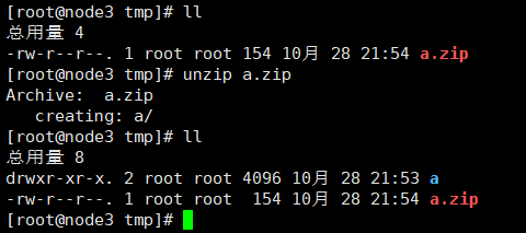 范例:在/tmp目录下创建a目录,然后执行命令:zip -r a.zip a,将a目录压缩为a.zip文件