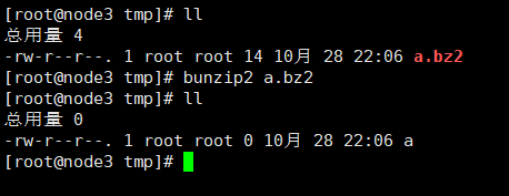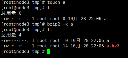 范例:在/tmp目录下创建a文件,然后执行命令:bzip2 -k a,将a文件压缩为a.bz2文件。