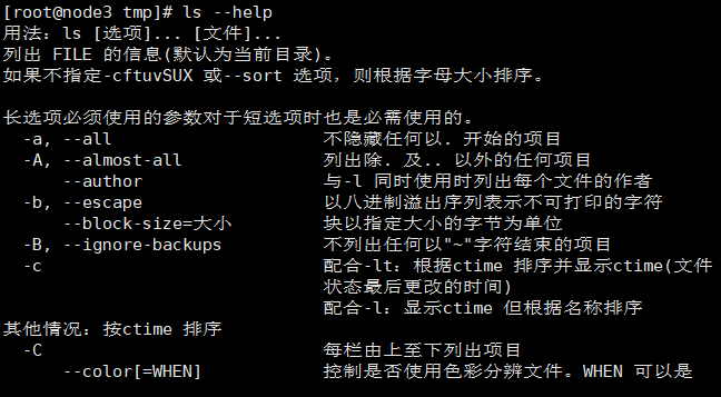 三、获得命令的中文帮助信息:–help