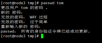 注意:root用户能修改任何用户的密码。而普通用户只能修改自己的密码,而且密码要符合密码规则,不然修改不了